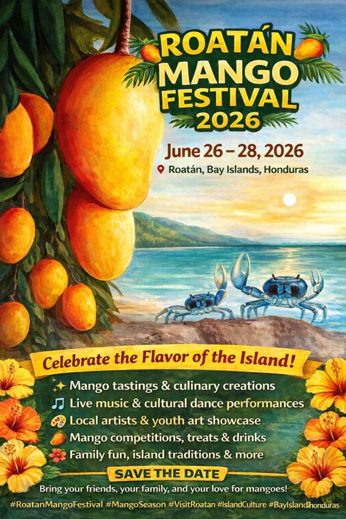 Expect a lively atmosphere filled with fresh mango tastings, creative island dishes, live music, cultural dance, and local art. From homemade treats and unique recipes to crafts and community showcases, the festival highlights the creativity and talent found across Roatan.